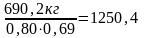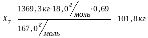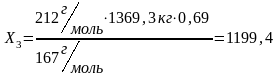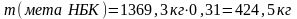 Проверка по второй стадии реакции с учетом выхода: из 167,0 г/м м-ДНБК - 212,0 г/м ДНБК, из 1369,3 кг м-ДНБК -