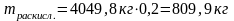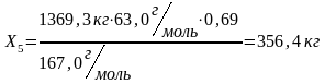 Азотная кислота, не вступившая в реакцию нитрования, частично остается в отработанной кислоте, частично расходуется в побочных реакциях, частично улетучивается в вентиляцию. Распределение азотной кислоты по этим статьям зависит от конкретных условий проведения реакции, то есть от температуры процесса, свойств и качества нитруемого соединения и т.д. На основании такого допущения определяем, что на раскисление пошло 20% моногидрата