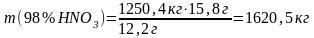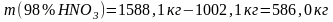 | 2. Азотная кислота (98%): ОВ 1588,1 кг вода 32,4 кг | 1620,5 | 2. | 378,7 |