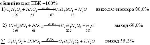 В процессе нитрования происходит раскисление орто - и пара-нитробензойных кислот и непрореагировавшей мета - нитробензойной кислоты [9].