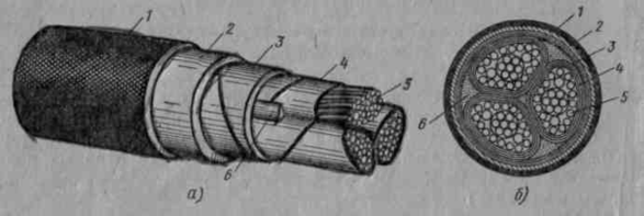 Силові кабелі складаються зі струмопровідних жил, ізоляції й захисних елементів (рис. 1, а, б).