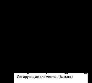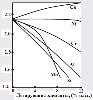 Рис. 5. Влияние легирующих элементов на индукцию насыщения (Bs) железа