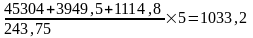 Тосн = (45304 + 3949,5 + 1114,8) 5 = 251841,5 руб.,