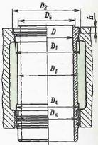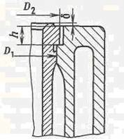 В автомобильных и тракторных дизелях применяют мокрые гильзы, отливаемые из чугуна, с верхним опорным фланцем (см. рис. 1.1, а, б и рис. 1.2). Опорная площадь фланца, ограниченная диаметрами D1 и D2, составляет 8–15% площади поршня. При этом давление от сил затяжки шпилек, крепящих головку цилиндра к блоку, на кольцевой поверхности (Dt – D2) не должно превышать 380–420 МПа для чугунных и 140–180 МПа для алюминиевых блоков. С увеличением разности D2 – D1 повышается напряжение изгиба в верхнем поясе. Высота h фланца составляет 7–10% диаметра цилиндра D.