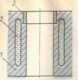 1 – блок цилиндров; 2 – водяная рубашка; 3 – вставка