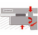При затяжке болтов головка блока сильно прижимается к блоку цилиндров. При этом болты крепления головки блока и правила затяжки разработаны таким образом, что связь головки блока цилиндров с блоком выдерживает максимальное давление цикла вплоть до 200 бар. В результате через болты и прокладку передается гигантское усилие на седло буртика. Поэтому очень важно, чтобы усилие передавалось через прокладку на седло строго вертикально.