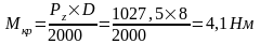 kp=1,0 – при расчете тангенциальной составляющей Pz;