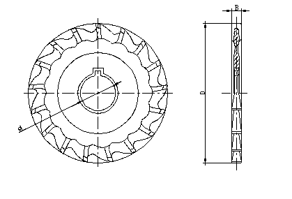 Параметры инструмента: D = 50 мм, b = 8 мм, d = 16 мм, z = 14.