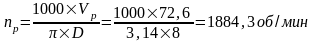 Скорость заготовки V3=15(м/мин), тогда частота вращения заготовки: