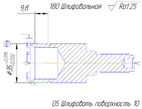 7. Определяем длину рабочих ходов стола, она равна длине шлифуемой поверхности Lрх=9,8 мм.