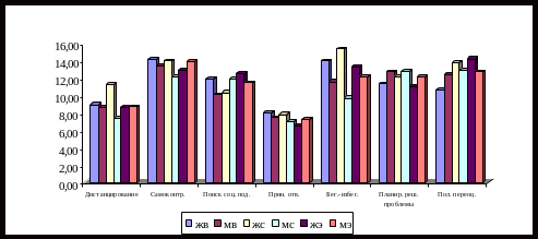 Так, эйтоники, подобно ваготоникам, в качестве ведущего копинга предпочитают стратегию «Планирование решения проблемы». При этом они прибегают к данной стратегии поведения намного реже, чем ваготоники, что, по-видимому, связано с более низким уровнем функциональных резервов в данной группе. Этим, возможно, обусловлен и выбор вспомогательных стратегий совладающего поведения: эйтоники, подобно симпатотоникам, прибегают к стратегиям «Принятие ответственности» и «Поиск социальной поддержки». Причем к последнему копингу эйтоники прибегают реже, чем симпатотоники. Однако и в этой группе копинг «Самоконтроль» используется намного реже, чем в группе ваготоников. В результате, проблемно-ориентированные копинг-стратегии на фоне сниженного контроля за собственным поведением и эмоциональными состояниями могут оказаться дезадаптивными механизмами. Подобно симпатотоникам, эйтоники еще реже используют стратегию «Положительной переоценки», что также несколько снижает адаптивные возможности проблемно-ориентированных стратегий совладающего поведения, осложняя анализ и оценку ситуации и создавая таким образом предпосылки для развития психоэмоционального стресса. Характерный для данной группы повышенный тонус напряжения высших регуляторных центров в сочетании со сниженным уровнем функциональных резервов обусловливает выбор копинга «Дистанцирование» в качестве защитного механизма сохранения функциональной устойчивости организма. При этом к стратегии «Бегство-избегания», которая может оказаться продуктивной в определенных ситуациях, эйтоники прибегают реже, чем представители остальных групп (Рис. 1). Таким образом, особенности вегетативного баланса эйтоников обусловливают некоторое снижение гибкости стресс-совладающего адаптивного поведения.