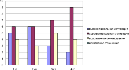 На рис. 4 наглядно представлена возрастная динамика школьной мотивации с первого по четвертый класс: