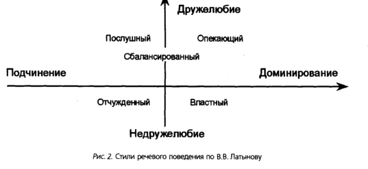 В.В. Латыновым выделено пять стилей речевого поведения. Данные стили (рис. 2), перекликаются со стилями интеракции И.Л. Руденко. В этом нет ничего удивительного, так как, заняв определенную позицию по отношению к собеседнику, человек оформляет свою речь в соответствии с ней. Стиль общения каждого человека, таким образом, складывается из его интерактивного, коммуникативного и социально - перцептивного стилей.