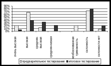 Склонность к необоснованной тревожности на предварительном этапе наблюдалась у одной испытуемой, на итоговом - у двоих.