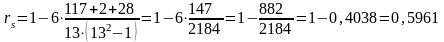 В данном случае, в ряду А 4 группы одинаковых рангов, следовательно а1 = 2, а2 = 2, а3 = 2, а4 = 2.