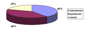 Подросткам из полных семей характерна адекватная (40%) и завышенная самооценка (40%). Данные уровни самооценки развиваются у детей в семьях, отличающихся сплоченностью и солидарностью. Более позитивно здесь отношение матери к себе и к мужу. В глазах ребенка родителям всегда сопутствует успех.