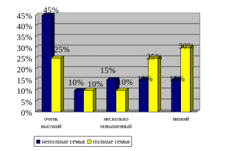 Рис. 3 Уровни тревожности подростков из неполных и полных семей