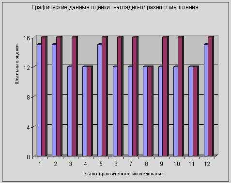 Таким образом, из выше представленных данных видно (Таблица 3), что за время проведенной работы по развитию мышления младших школьников в экспериментальной группе нам удалось значительно повысить уровень развития наглядно-образного мышления детей (Диаграмма 5).