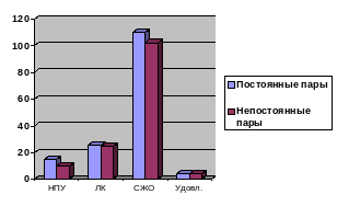 ∆ методика «Нервно – психическая устойчивость»: в группе с постоянными парами – 4,4634, с непостоянными парами – 3,5253;