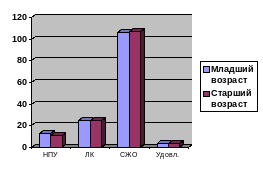 Рис.3.6 Диаграмма средних результатов в группах, выделенных по основанию возраста