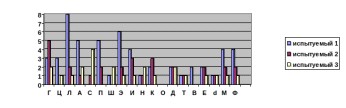 По данным графика 3 можно выявить тип акцентуации каждого испытуемого.