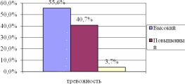 Анализируя результаты теста Филипса, мы отметили, что у наибольшего количества учащихся на момент исследования факторами высокой тревожности являются страх не соответствовать ожиданиям окружающих (25,9 %), страх ситуации проверки знаний (22,2 %), страх самовыражения (22,2 %), проблемы и страхи в отношениях с учителями (22,2 %).