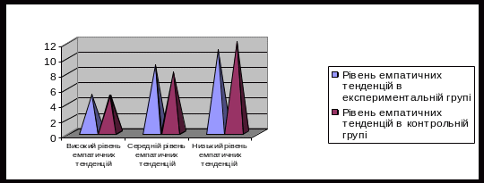 Рис. 9. Порівняння результатів емпатичних тенденцій досліджуваних експериментальної та контрольної груп