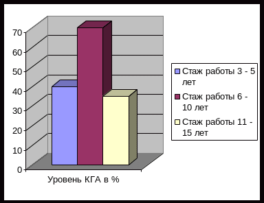 Повышение коэффициента групповой адаптации у группы учителей (70%) со стажем работы 6 – 10 лет, возможно связано с началом продуктивной деятельности, где каждый из них может максимально реализовать свои возможности.