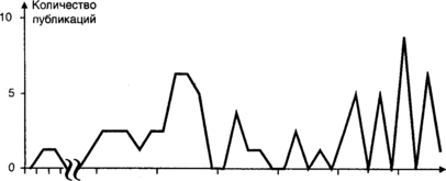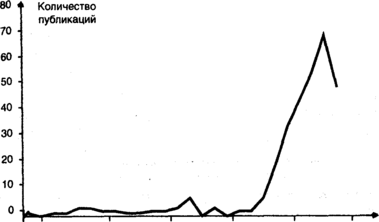 1969—1985 гг. и 1986 г. — настоящее время. Первый характеризуется небольшим количеством ежегодных публикаций, в основном это работы, подготовленные представителями научного коммунизма и специалистами-международниками. Второй период характеризуется бурным ростом числа публикаций, ежегодно издаются десятки работ (рис. 3.6).