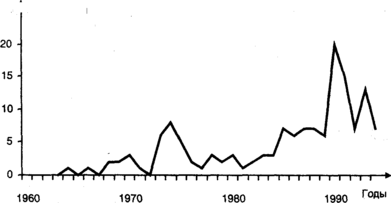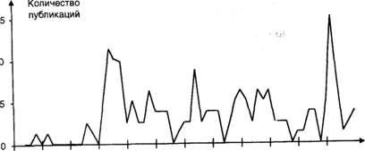 К середине 70-х годов интерес педагогов к конфликтам растет, но в последующие годы эта тенденция не получает развития. Для второй половины 80-х годов характерно увеличение ежегодного количества работ по данной тематике (рис. 3.5).