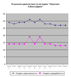 Для решения нашей задачи мы использовали личностный опросник, разработанный А.Бассом и А.Дарки в 1957 г., для диагностики агрессивных и враждебных реакций.