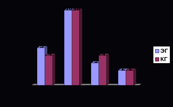 В экспериментальной группе 35% учащихся имеют высокий уровень выраженности эпилептоидного типа, а у 15% имеют средний уровень. Гипертивный тип у 25% учащихся имеет высокий уровень развития. Неустойчивый тип у 10% учащихся находится на высоком уровне развития, а у 15% подростков эпилептоидно-неустойчивый тип находится на высоком уровне развития.