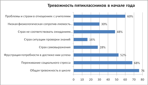 Таким образом, в начале учебного года у пятиклассников присутствует повышенная школьная тревожность.