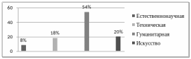Анализ данных показывает, что старшеклассники проявляют большую склонность к гуманитарным дисциплинам и искусству (Диаграмма 2).