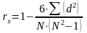 Коэффициент ранговой корреляции Спирмена подсчитываем по формуле: