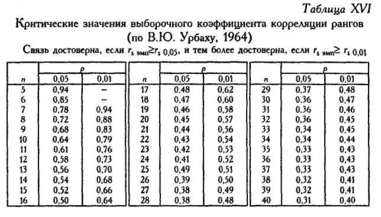 Связь достоверна, если Rsэмп>Rs0/05, и тем более досьоверна, если Rsэмп>Rs0.01