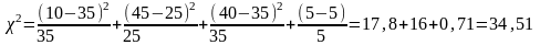 Полученное нами значение χ2 = 34 больше соответствующего табличного значения m-1 = 3 степеней свободы, составляющего при вероятности допущения ошибки меньше чем 0,05