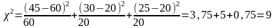 Для этого мы воспользумся критерием χ2. Его формула выглядит следующим образом,