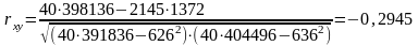 Висновок. У нашому експерименті коефіцієнт Пірсона дорівнює -0,2945. Отже, порівнювані середні значення рівня розвитку творчого потенціалу у студентів в контрольній групі на етапі констатуючого експерименту і експериментальної групи на етапі контрольному експерименту, статистично вірогідно розрізняються. Це говорить про те, що корекційно-розвиваючі вправи, спрямовані на підвищення рівня творчого потенціалу, ефективні. Отже, корекційно-розвиваюча робота, що проведена зі студентами експериментальної групи й спрямована на зниження тривожності, ефективна.