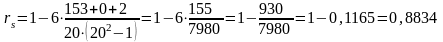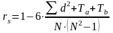 В данном случае, в ряду а присутствует две группы одинаковых рангов, следовательно а = 0, а значит Та = 0