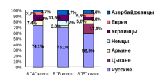 | Национальность | 8 «А» класс | 8 «Б» класс | 8 «В» класс | Общий результат |