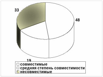 Совместимость-несовместимость определялась совокупностью характеристик, полученных благодаря проведению вышеназванных методик.