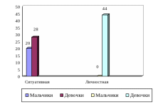 Анализируя полученные результаты мы приходим к выводу, что у девочек личностная и ситуативная тревожность выше, чем у мальчиков.