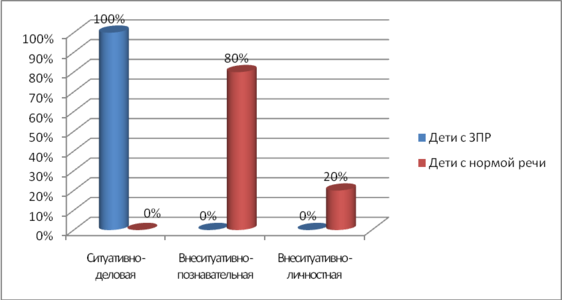 | Ведущая форма общения | Дети с ЗПР | Дети с нормой речи |