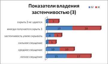 Отвечая на вопрос № 5 анкеты, женщины и мужчины по-разному оценивают свою застенчивость по отношению к людям своего круга (рисунок 4).