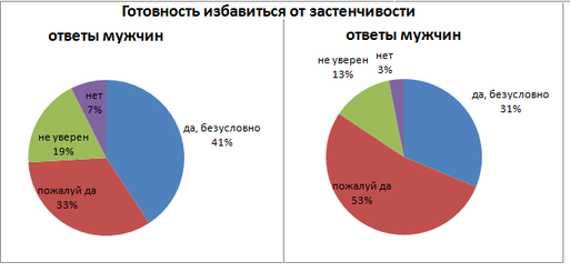 ). Большинство мужчин и женщин готовы избавиться от застенчивости, они ответили "да, безусловно" и "пожалуй, да" (рисунок 10).