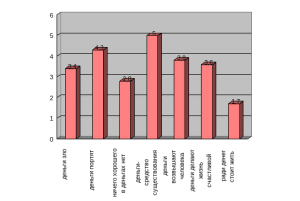 Таким образом, можно говорить, что в представлениях респондентов практически соответствуют истине выражения о том, что деньги портят, деньги являются средством существования, деньги возвышают человека и делают жизнь счастливой. А выражения «ничего хорошего в деньгах нет» и «ради денег стоит жить» не соответствуют большинству мнений опрошенных.