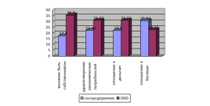 -удовлетворение экономических потребностей, так, более удовлетворены экономические потребности у сотрудников ОАО;