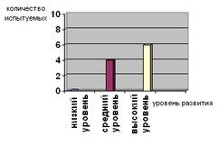 Испытуемых с низким уровнем развития по данной методике на этапе контрольной диагностики не выявлено.