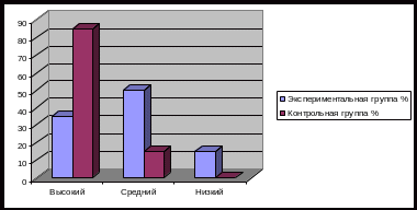 | Уровень развития | Экспериментальная группа | Контрольная группа | ||